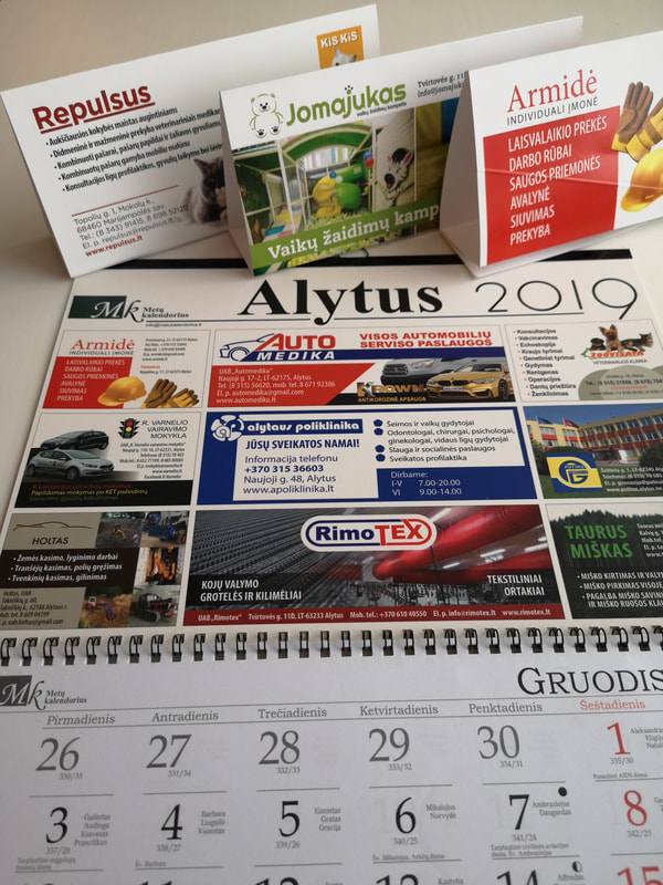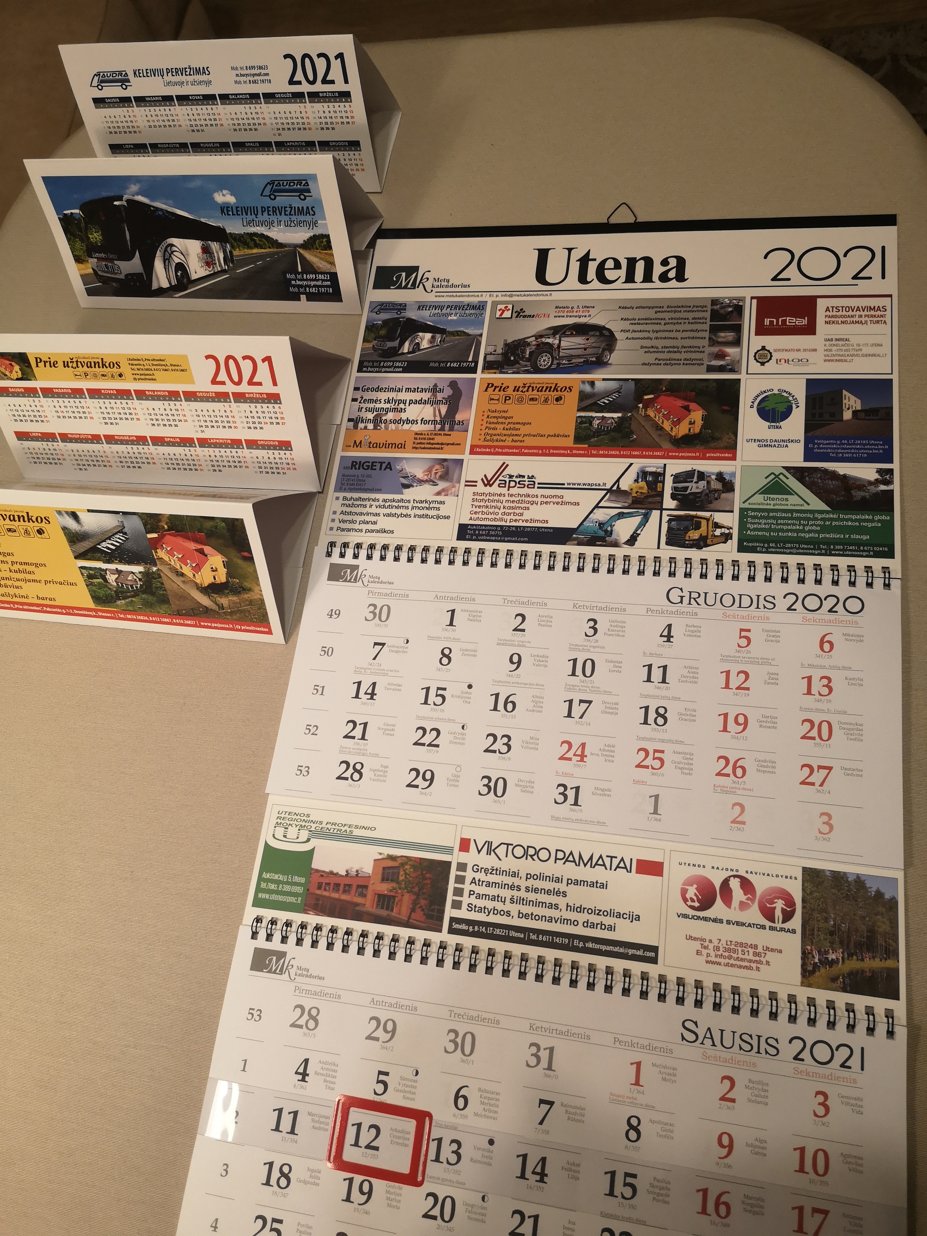 Vardadieniai, švenčių dienos, atmintinos datos, mėnulio fazės. Laminuoti matine plėvele, slenkantis langelis. Kalendorius yra dailiai ir tvarkingai įrištas spirale, bei turi specialų kabliuką, tad jį nesudėtingai pritvirtinsite prie sienos. Kalendoriaus matmenys:330x900mm
